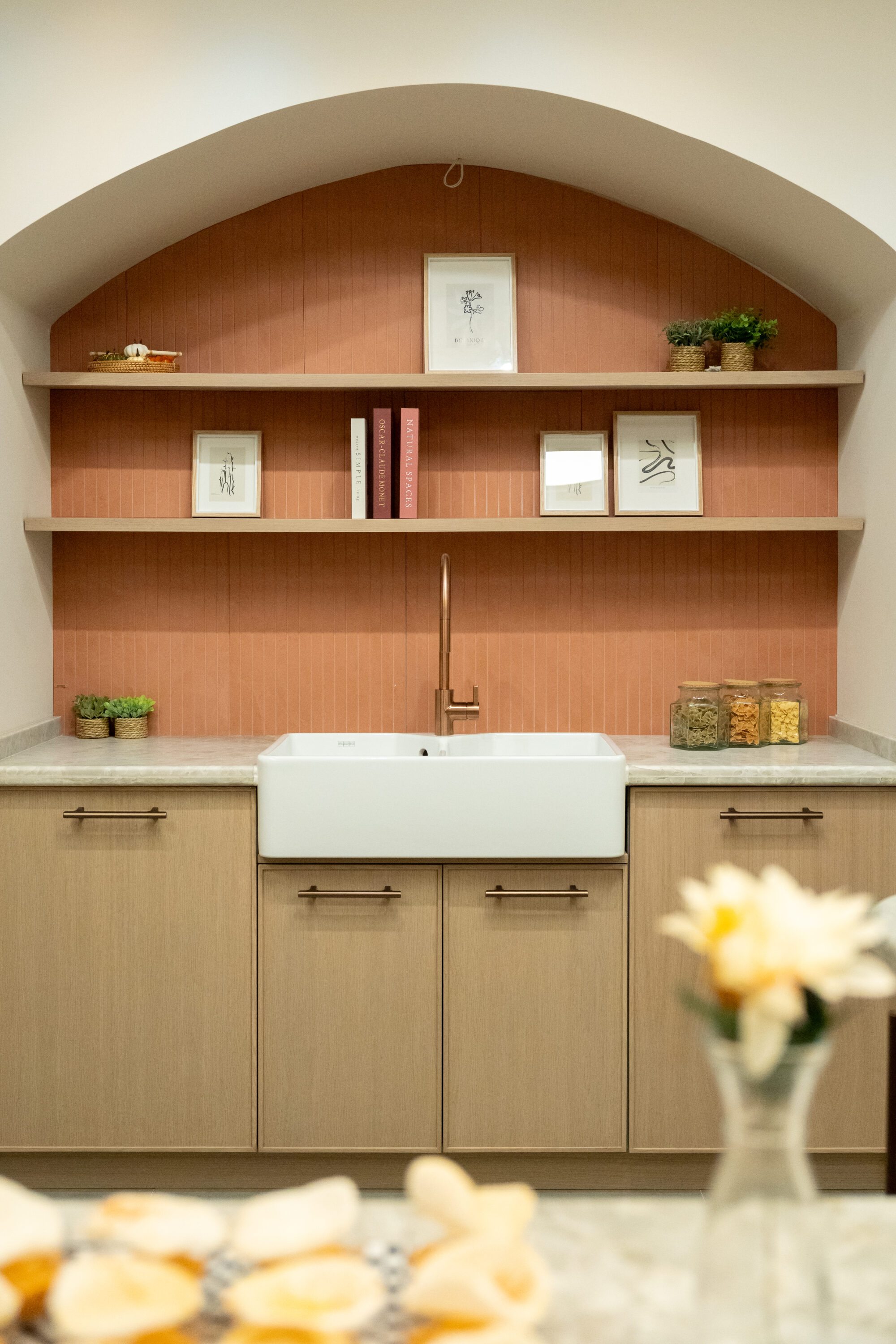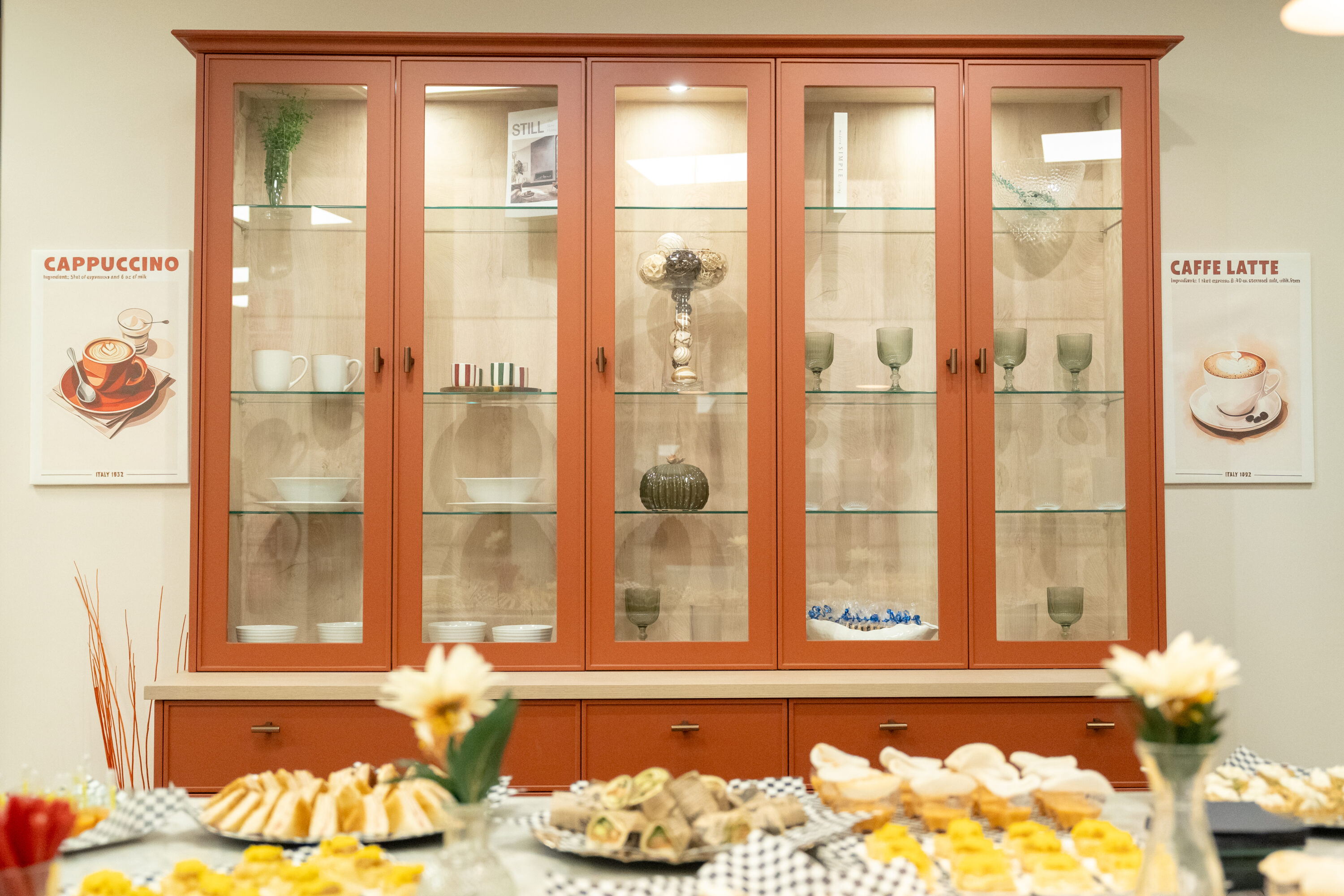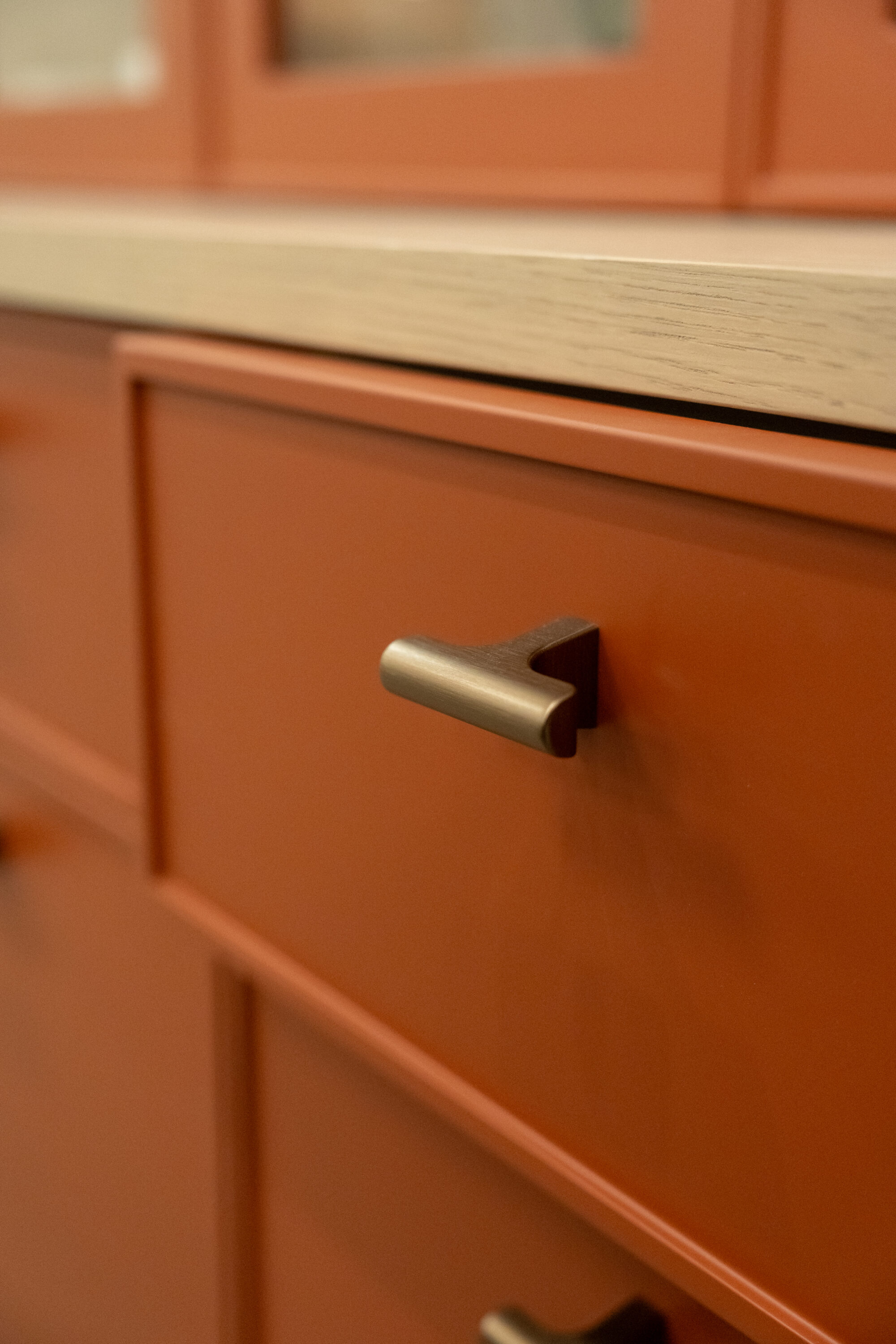 Dentro de la exposición de Fiona Studio Alonso y Sal by Acota, la alacena en acabado Rosso Namib se convierte en una de las piezas con mayor personalidad del espacio.