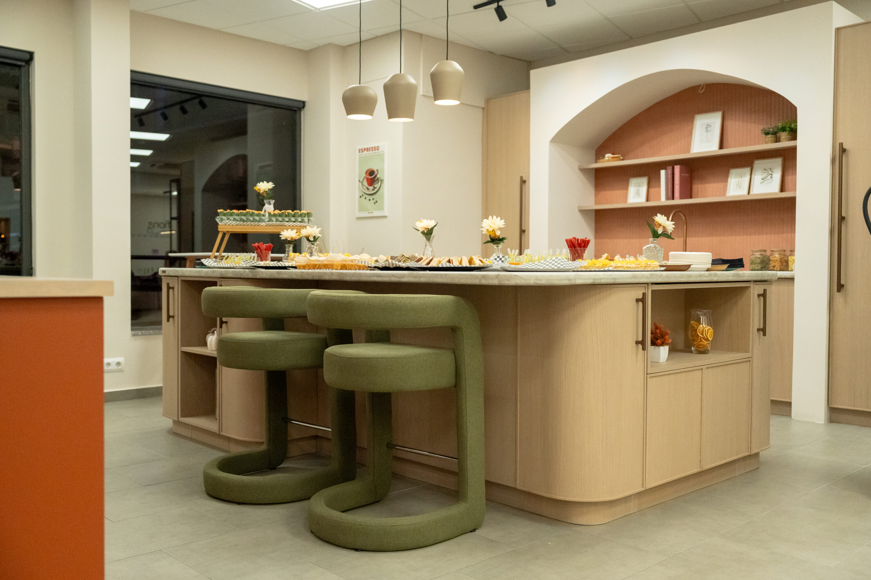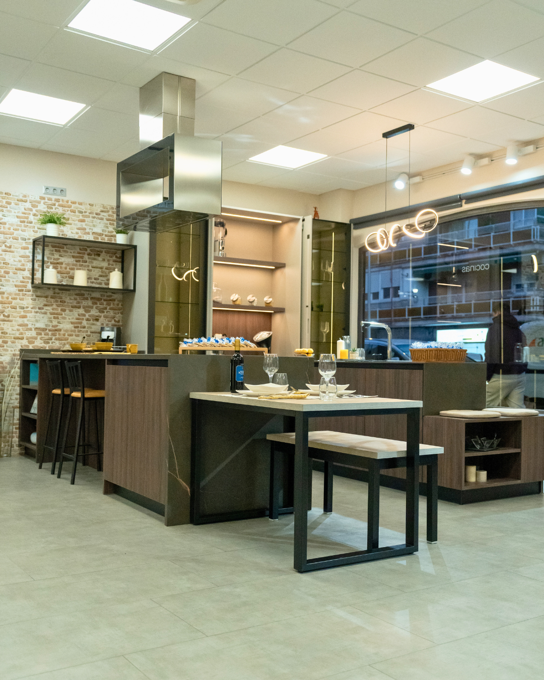 El estudio ofrece un entorno donde descubrir de cerca los acabados, explorar diferentes configuraciones de cocina y desarrollar cada proyecto con el acompañamiento de un equipo especializado.