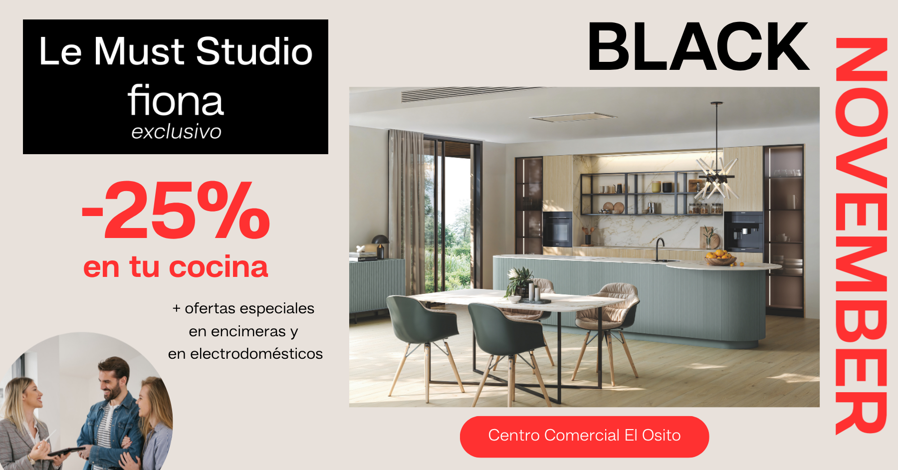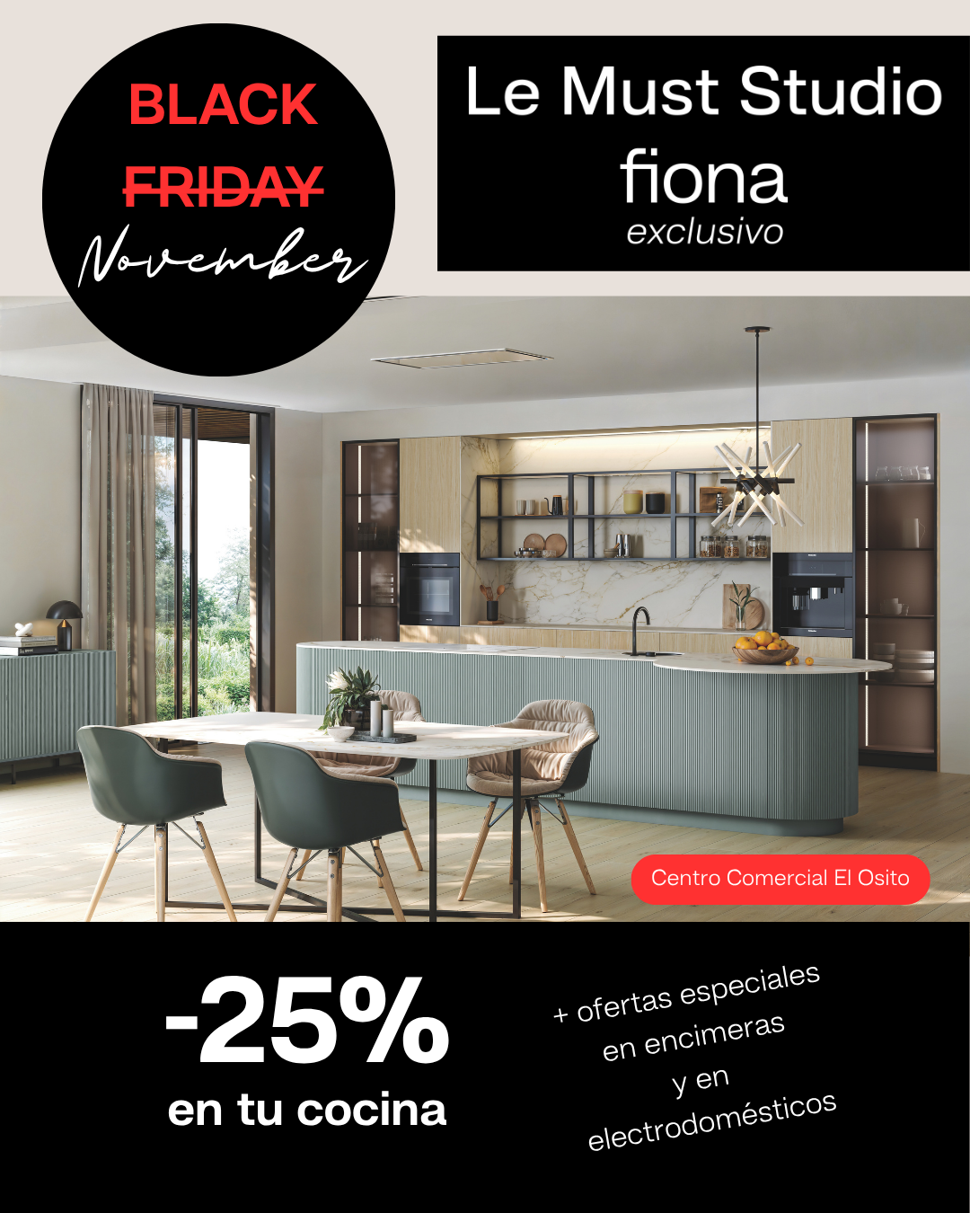 Solo hasta el 30 de noviembre, disfruta de condiciones especiales en proyectos de Cocinas Fiona: descuentos exclusivos en mobiliario a medida, diseño e instalación y ventajas en electrodomésticos y encimeras.